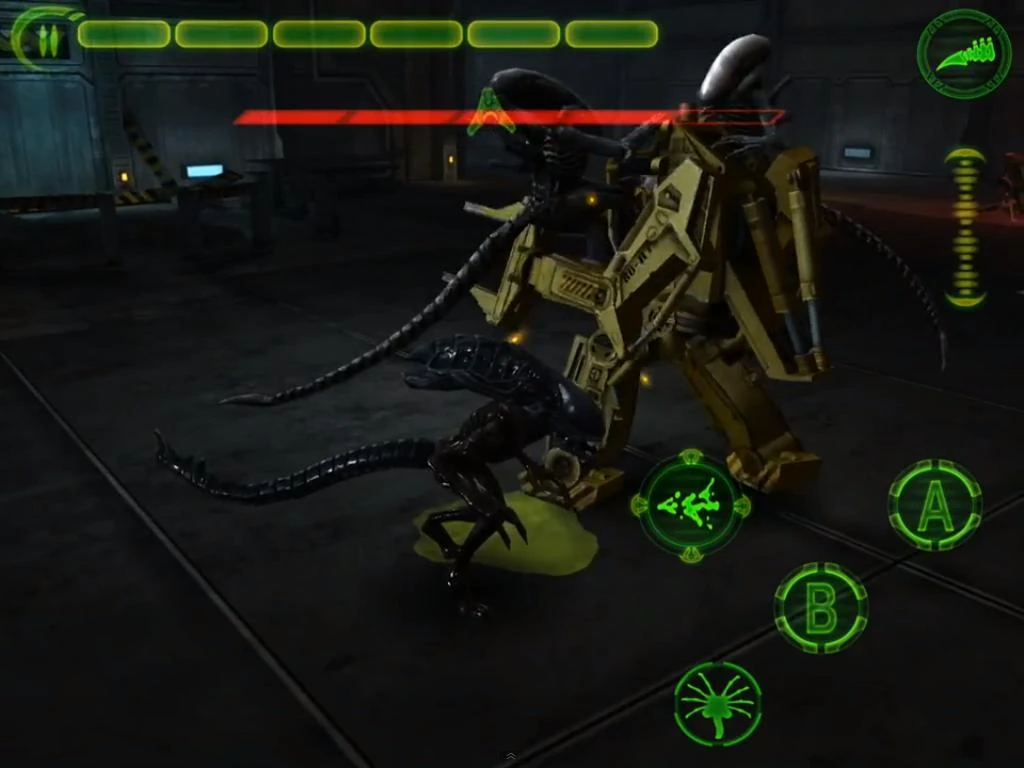 The complexes corridors lead into a hanger with a Dropship, here you will fight Mercenaries, Marines and Synthetics, and as you do Aliens appear which have been released and not controlled by the Super Predators any more, these then help you fight against a Power Loader.