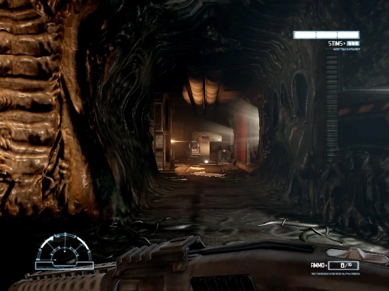Unhindered by the dark, unlit areas are no obstacle for the aliens. Ample dark area once all the lights have been smashed through the whole of the Refinery.