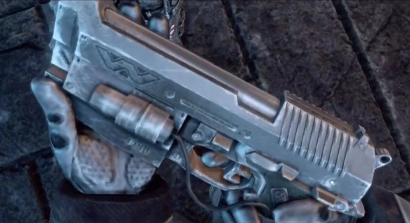 Prometheus (film) weapons include pistols which fire high velocity bullets.