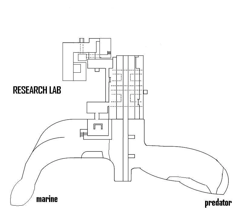 Research Lab is playable as a Predator, Alien and Marine, each starting at a different location.