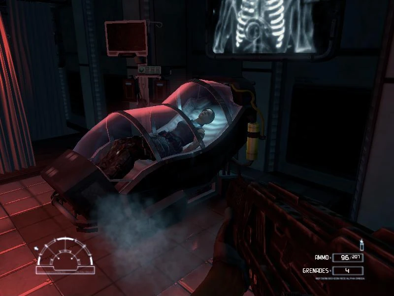 A Stasis unit in the Research Lab was used for Tequila and for the rest of the crew aboard the UD4L Cheyenne Dropship at the end of the Aliens v Predator 3 campaigns on the surface of BG386.